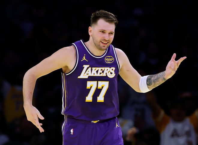 此人就是东契奇,今日(2025年11月26日)湖人主场迎战快船,湖人缺少了艾顿,快船缺少了比尔、琼斯、博格丹。比赛刚开始快船让哈登去防东契奇,东契奇面对哈登火力全开,首节比赛砍下24分,半场战罢砍下32分。东契奇状态太好,快船只能改变防守策略,包夹东契奇让他出球,但这样一来湖人有了很多四打三机会,詹姆斯、里夫斯又火力全开了,最终湖人以135-118大胜快船。