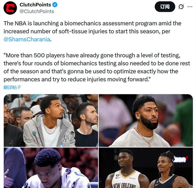 为此NBA正在启动一项全新的生物力学评估计划,以优化球员表现的同时,降低伤病发生的概率,目前已经有超过500名球员完成测试。