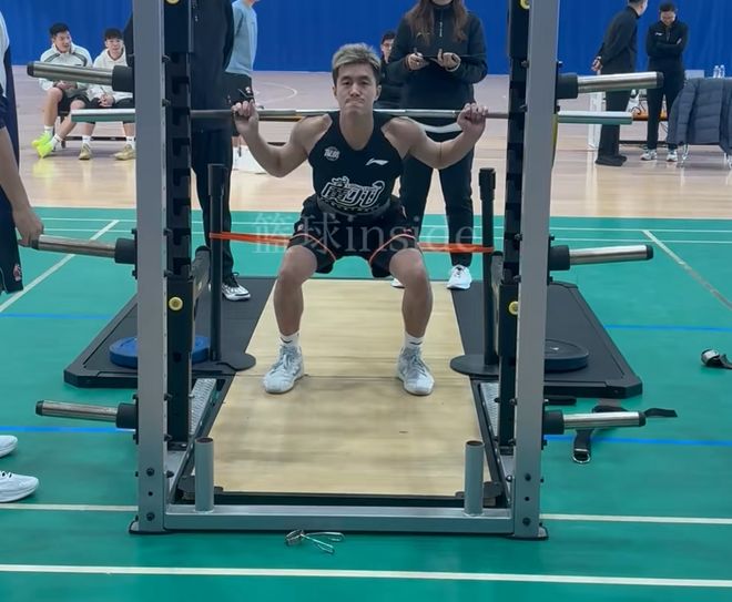 郭艾伦早上还进行了负重深蹲,表情是比较吃力的,但整个过程都非常顺利,这样的重量还是轻松的。别看郭艾伦平时参加了一些活动,他的训练量还是可以保证,这就足够了,最终他深蹲了20个。