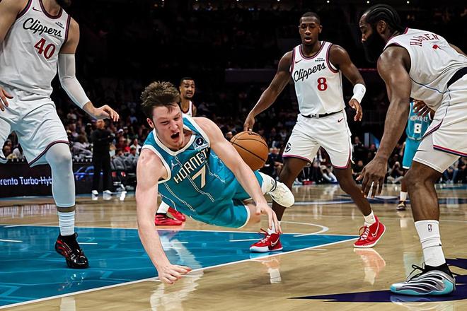 本场比赛中,黄蜂虽然又一次输掉了比赛,但是球队的先发侧翼新秀康-克尼佩尔(Kon Knueppel)的表现依然是非常突出的。克尼佩尔全场出场34分08秒,投篮12中9,三分线外9中6,罚球2中2,得到了全队最高分26分外加1篮板1助攻1抢断的数据,还有2次失误和4次犯规,正负值为-12。克尼佩尔在进攻端展现出了全面的得分能力,他有着相当出色的投射能力,命中了大量的外线投篮,他还具备一定的持球进攻能力,他在进攻端的能力绝对是被严重低估了。不夸张地说,克尼佩尔的个人能力在目前的黄蜂绝对是数一数二的水平,甚至可以说他绝对是快船眼中黄蜂最大的威胁点了。如果他能够得到更多的球权和更高的战术地位作为支持,他的数据还能够更上一层台阶。