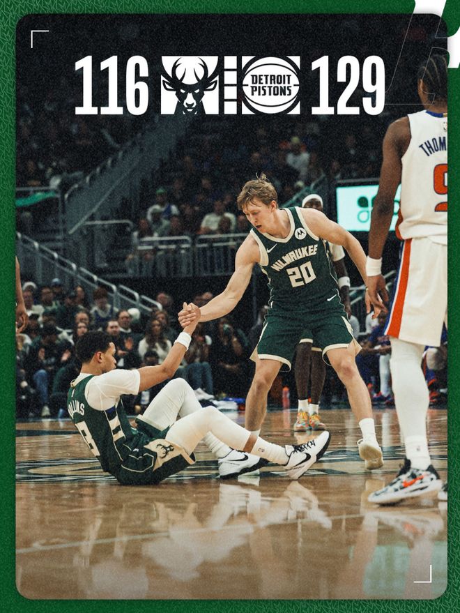 2025年11月23日 活塞轻取雄鹿豪取12连胜 CC29+8+10 艾维复出10分 字母哥缺战