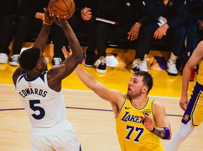 东契奇33+11+8湖人双杀爵士 詹姆斯17+6+8里夫斯22+10