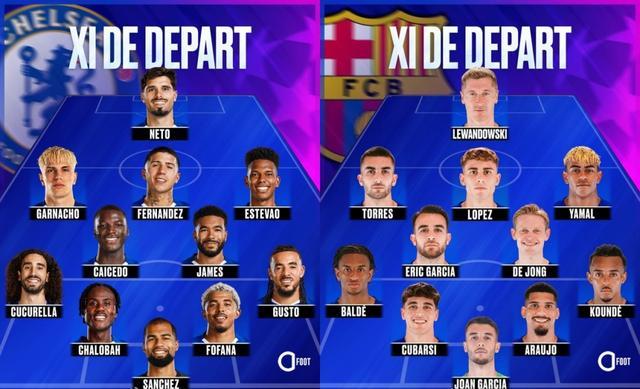 这是当前英超第2与西甲第2之间的对决,切尔西最近状态不错取得联赛3连胜,马雷斯卡派上内托单箭头,身后是加纳乔、恩佐和埃斯特旺。