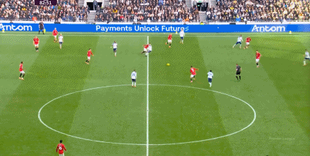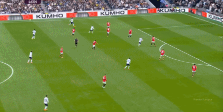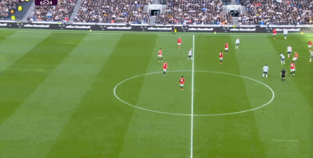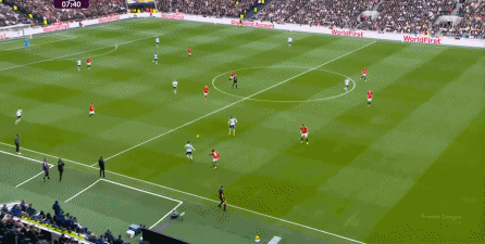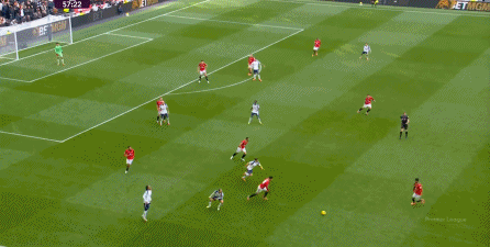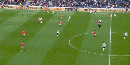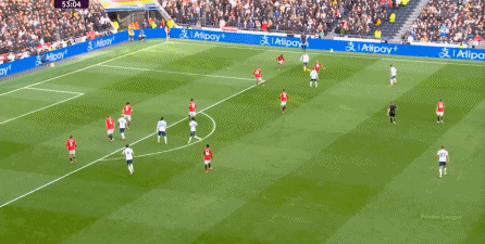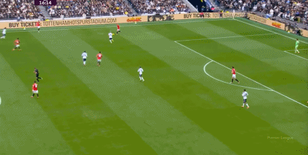 于是在下半场回来之后,热刺确实提高了进攻强度,出脚的时机大大提前,开始将压力直接甩到曼联后卫的身上: