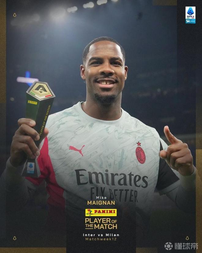 米兰门将迈尼昂本赛季表现出色,这不仅体现在他周日对阵国际米兰时扑出点球,他在本月早些时候对阵罗马的比赛中,就曾扑出迪巴拉的点球,帮助球队取得了又一场1-0的胜利。